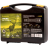 В комплекте два аккумулятора 18650 емкостью 3500 мАч, аксессуары серийной комплектации Viking Pro и дополнительные аксессуары для охоты: быстросъемное магнитное крепление на оружие, цветные фильтры и магнитная выносная кнопка с витым шнуром, удобный пластиковый кейс.
